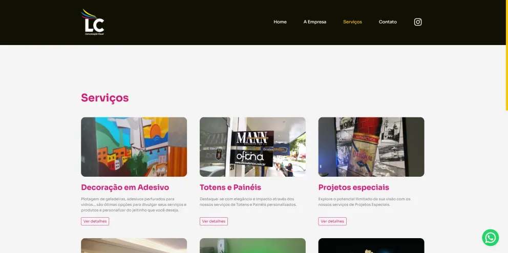 A LC Comunicação Visual é uma empresa especializada em oferecer soluções de comunicação visual de alta qualidade. Com sede em Colatina, Espírito Santo, a LC tem experiência desde 2016, trabalhando com diversos segmentos e colaborando estreitamente com seus clientes para transformar ideias em projetos impactantes. A empresa se dedica à criação de identidades visuais que agregam valor às marcas, utilizando tecnologia de ponta e criatividade para garantir resultados excepcionais. A LC valoriza a transparência e a confiança no relacionamento com os clientes, assegurando que cada projeto seja personalizado e alinhado com as expectativas dos clientes.